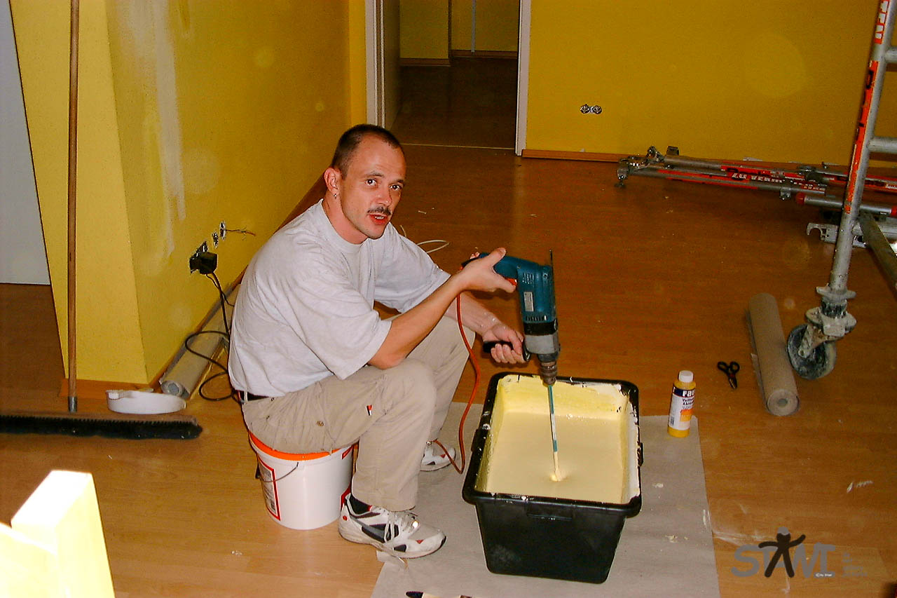 Die Farbe wird angemischt.