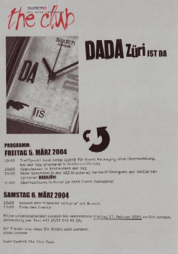 Unter dem Motto „DADA in Züri“ erhielten wir im Februar 2004 eine entsprechende vom Swatch Club International.