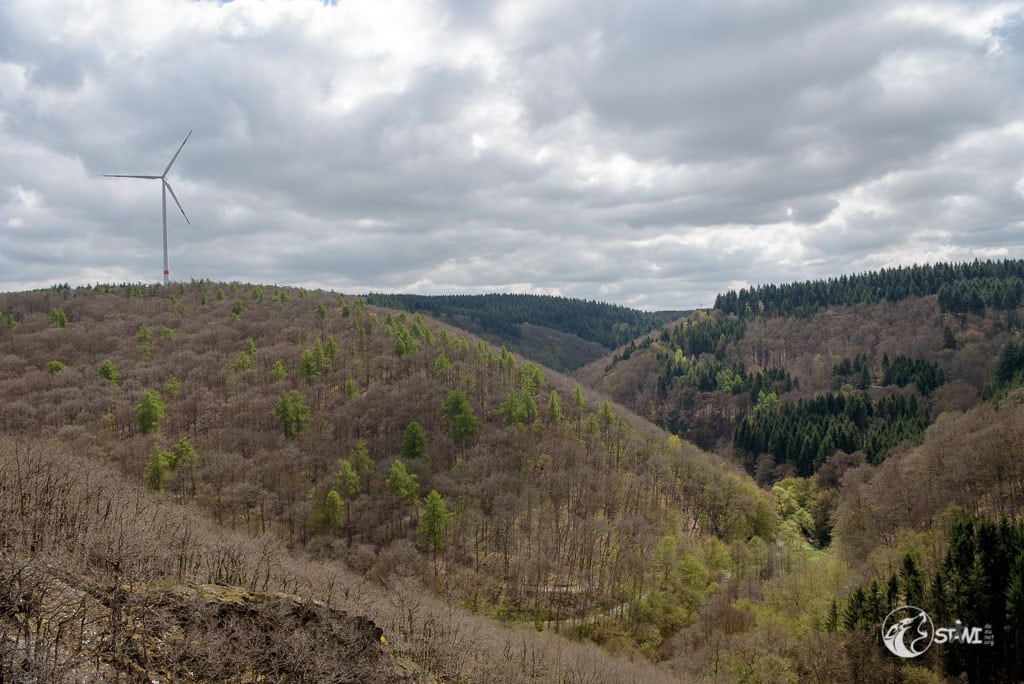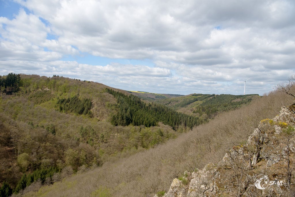 Gegen Mittag kamen wir in Mörsdorf an. Auf dem zweiten Parkplatz fanden wir auch schnell einen Parkplatz. Kurze Zwischenstopp im Besucherzentrum und dann folgten wir der Beschilderung. Da die Hauptwege recht gut besucht waren, nahmen wir den Wanderweg, der gerade mal 400m länger ist. Schnitzel konnte sich da schon mal auspowern. Schmale Pfade und viele Höhenmeter.